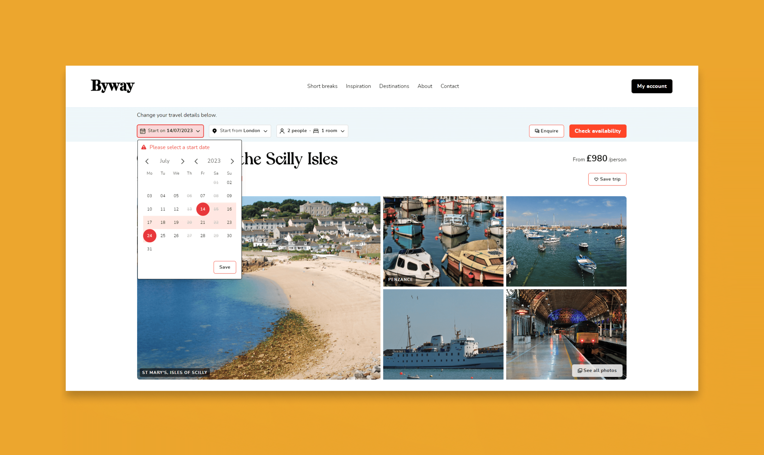 Customers were simply getting stuck into a loop, they would either not enter a date and click book, only for the system to error without them knowing or enter a date that was not bookable, clicking book again and get into the same situation.