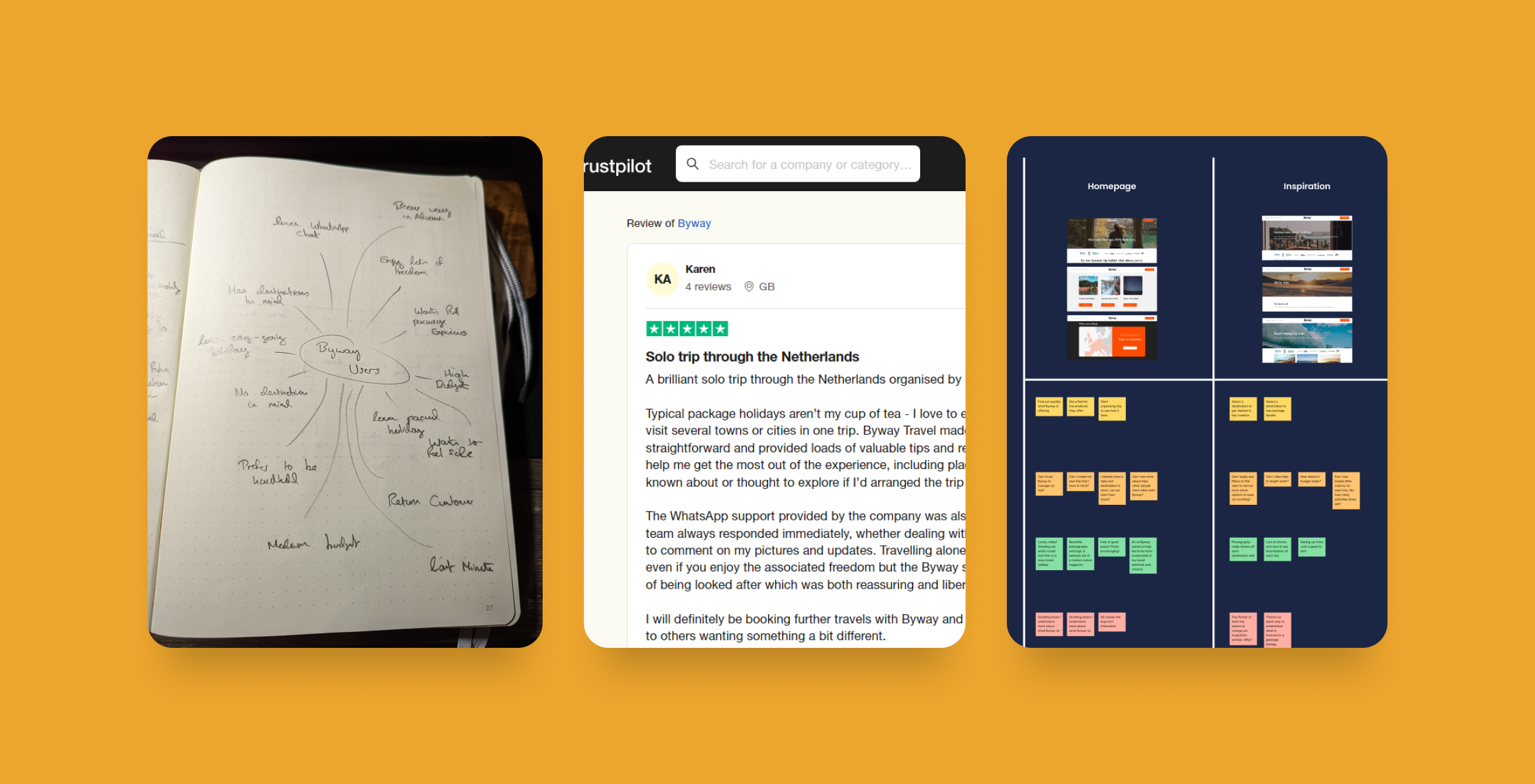 Post booking surveys, post trip surveys and customer interviews were the tools of choice for customer insights. Surveys were conducted by myself and the CMO for both customer that did and didn't book with Byway to help remove any bias in convesations.