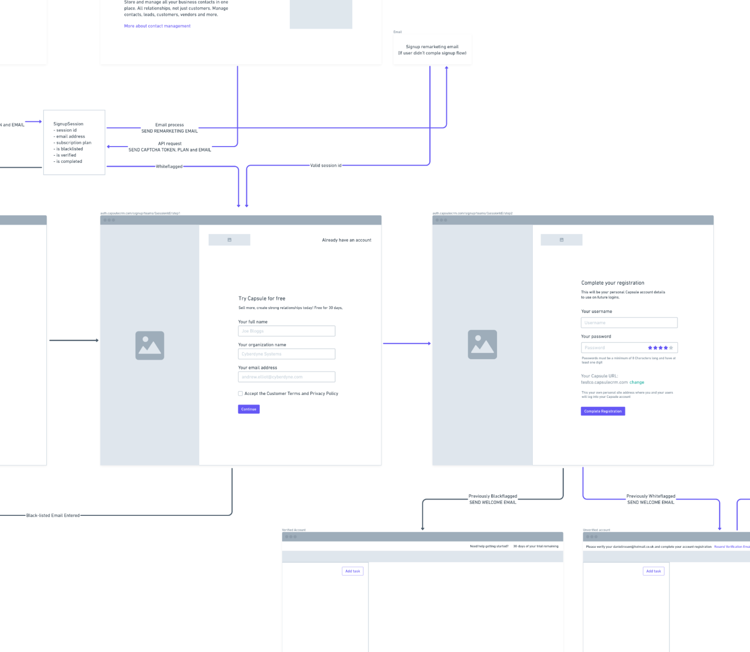 It was during this process where the business requirement of reducing the amount of spam accounts was considered further. This outcome had technical and design implications in that I identified a need to include an extra step for potentially problematic signup attempts.