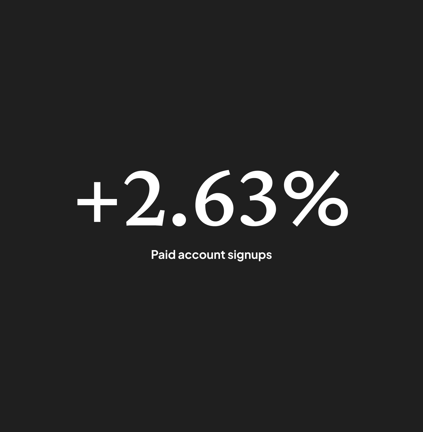 Paid signups saw an increase in overall conversions across all payed plans. Whilst not a massive improvement the quality of those customers have proven in the past to be higher and therefore more likely to convert to paying customers at the end of their trial period.